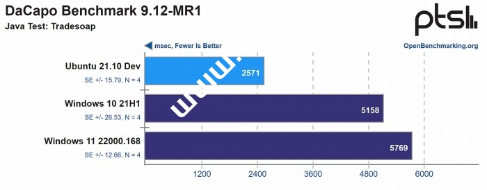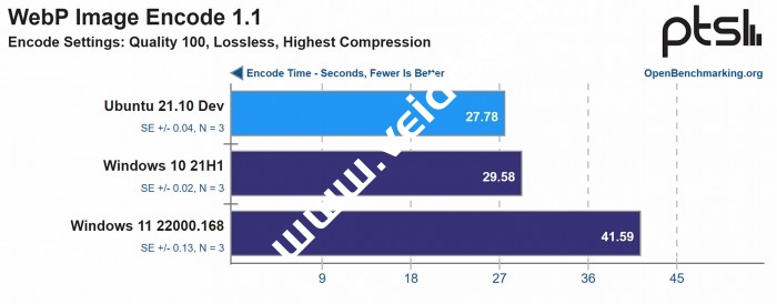 总的来说,Ubuntu 21.10似乎比Windows 10快10%,而在随后的Windows 11构建中则略微更快。您可以在Phoronix的网站上找到完整的性能评测和更多的基准数据,这些数据在下面的源链接中可以找到: