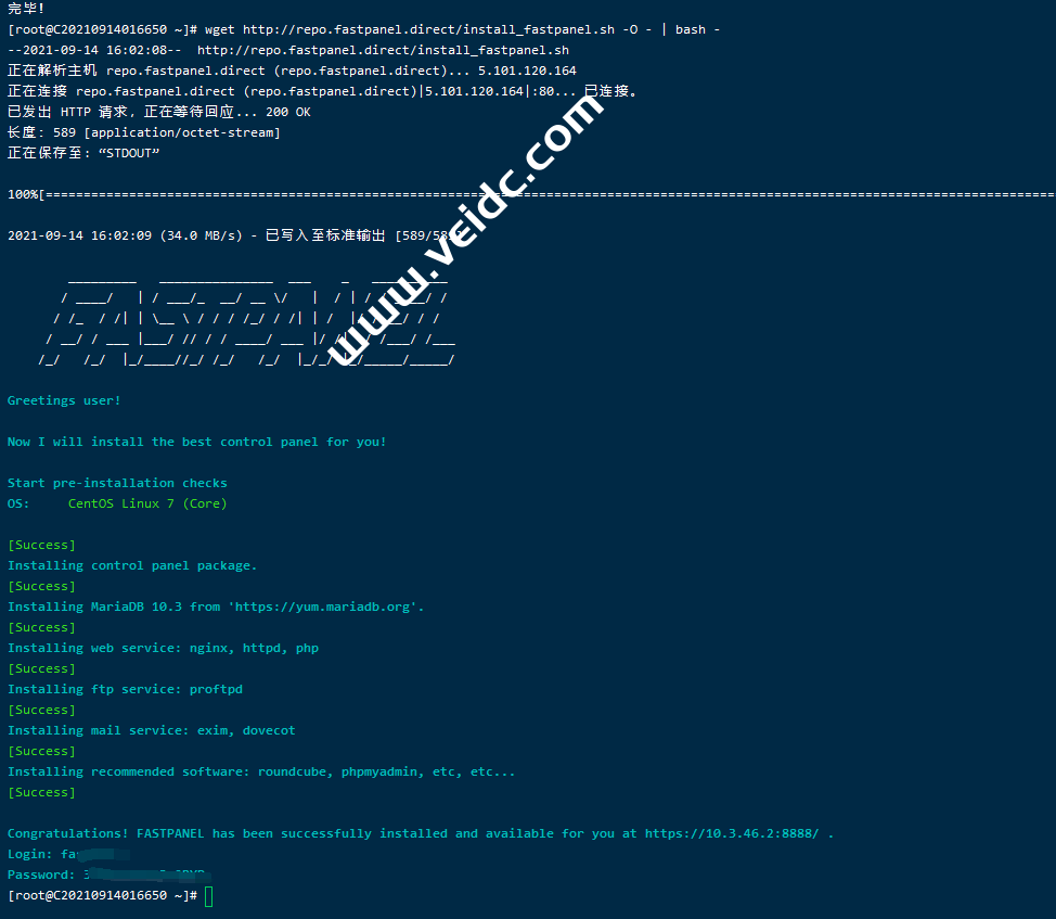 3、通过运行以下命令启动 FASTPANEL 安装步骤