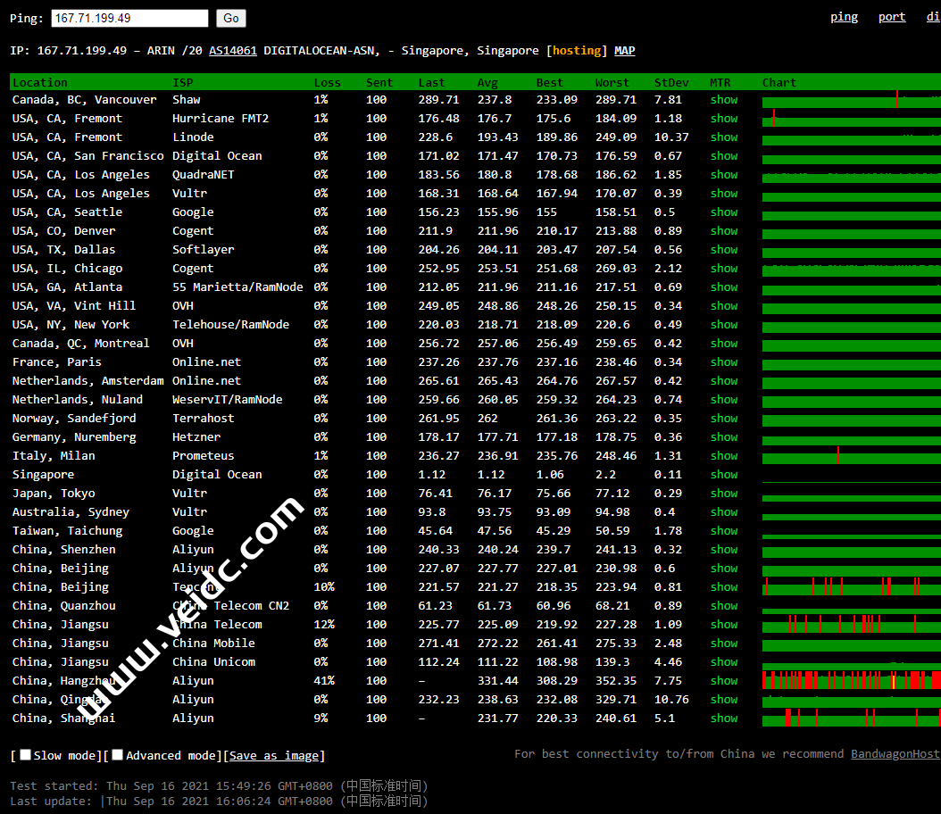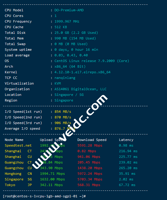 DigitalOcean目前在全球有13个机房,分布在北美、欧洲、亚洲等地区,数据中心覆盖范围没有Vultr广,在纽约和旧金山就多达6个机房,这样的话用户选择起来可能就不是那么方便,本文分享 DigitalOcean 新加坡机房的速度、延迟、丢包率、路由跟踪测试结果信息,以方便用户选择参考。测评说明:DigitalOcean系列测评机器均为AMD高性能平台,1核1G内存25 GB NVMe SSD,月流量1000GB,本站所有测评数据基本都是在安装了BBR的前提下进行的,站长经常使用的BBR:南琴浪版暴力魔改BBR一键安装脚本 附加速50倍效果图 和 超级加速工具KCPTUN一键安装脚本 附100倍加速效果图。