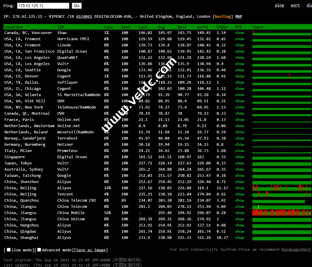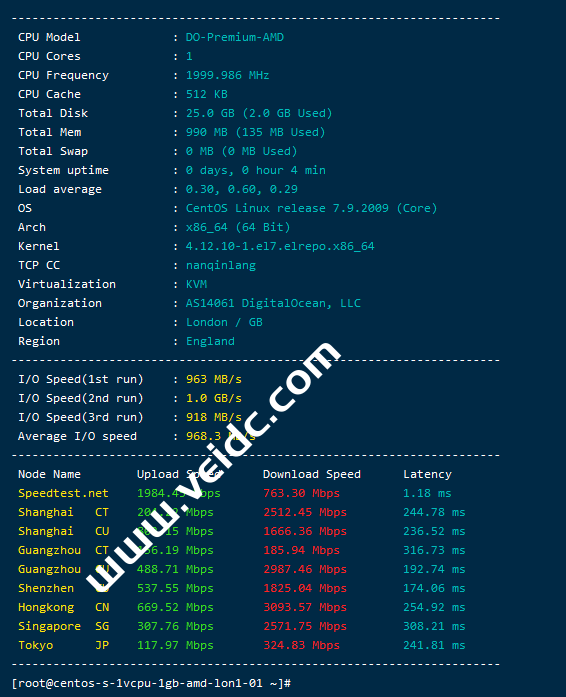 DigitalOcean目前在全球有13个机房,分布在北美、欧洲、亚洲等地区,数据中心覆盖范围没有Vultr广,在纽约和旧金山就多达6个机房,这样的话用户选择起来可能就不是那么方便,本文分享 DigitalOcean 英国伦敦机房的速度、延迟、丢包率、路由跟踪测试结果信息,以方便用户选择参考。测评说明:DigitalOcean系列测评机器均为AMD高性能平台,1核1G内存25 GB NVMe SSD,月流量1000GB,本站所有测评数据基本都是在安装了BBR的前提下进行的,站长经常使用的BBR:南琴浪版暴力魔改BBR一键安装脚本 附加速50倍效果图 和 超级加速工具KCPTUN一键安装脚本 附100倍加速效果图。