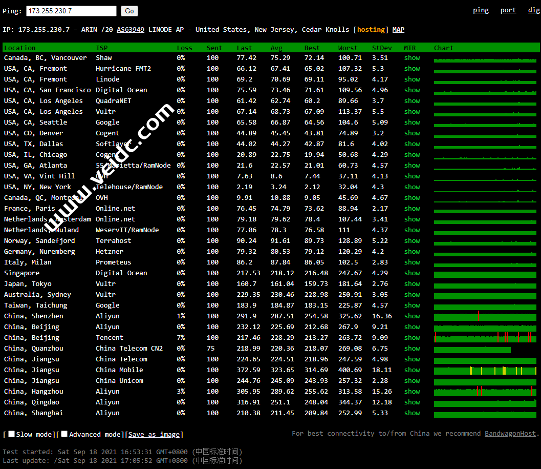 Linode目前在全球有11个机房,分布在北美、欧洲和亚太地区8个国家,为了方便广大用户选择机房,从今天起我们将测试Linode所有数据中心,本文分享 Linode 美国新泽西州纽瓦克机房的速度、延迟、丢包率、路由跟踪测试结果信息,不过此机房大概被玩坏了,老杨开通了4台才有一台国内可以使用的。测试机器为共享CPU1核1G,月付5美元的入门型号,我们觉得大多数用户是使用这款比较多,测试比较符合实际,测试机器均开启了BBR,所分享数据仅供大家参考。