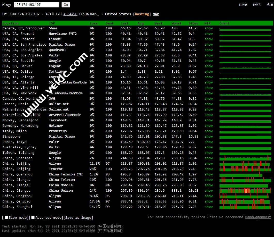 全球PING及丢包率测试: