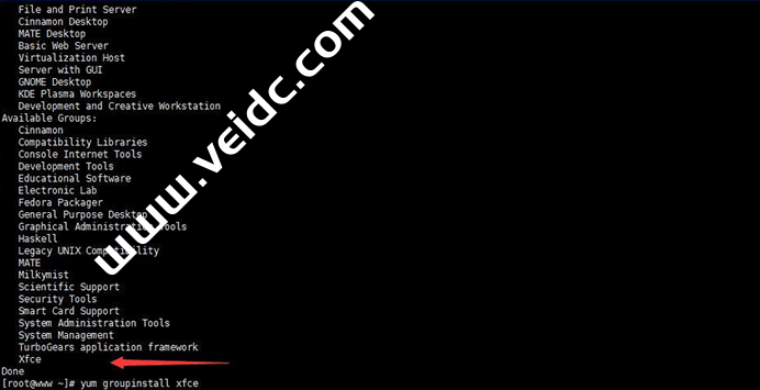 看到上图中,我们检测到包名是 Xfce ,执行”yum groupinstall Xfce“,安装Xfce 。执行”sudo systemctl isolate graphical.target“,进入Xfce。