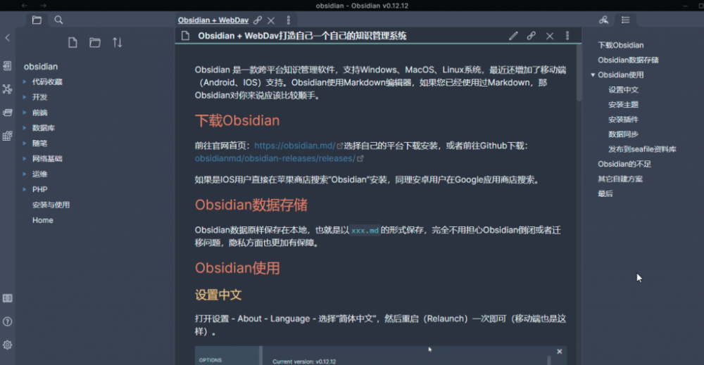 - Obsidian自身不支持第三方同步,需要自己想办法同步数据,希望后续官方支持自带WebDAV同步功能。