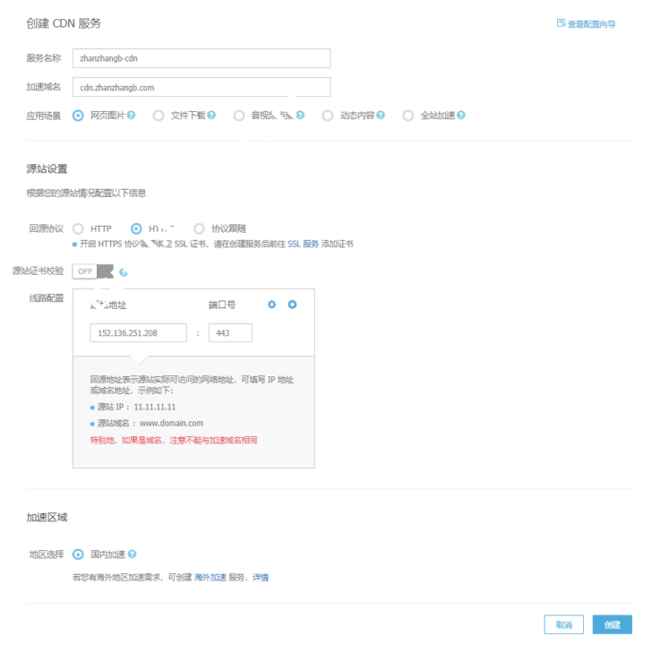 - 加速域名:填写此次需要配置的加速域名。