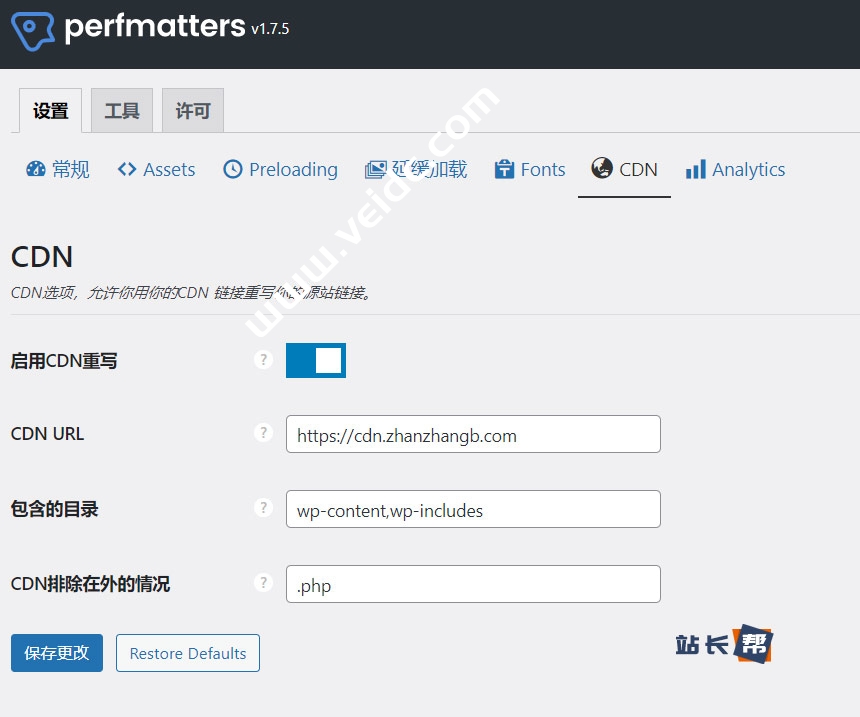 Perfmatters设置CDN重写另外WP Super Cache、W3 Total Cache等缓存插件均支持CDN设置功能。