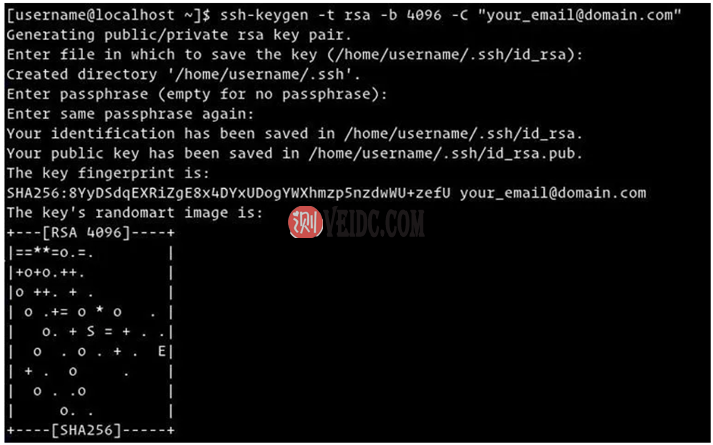 如果我们有SSH密钥对,我们可以使用它们或备份旧密钥并生成新密钥。要使用我们的电子邮件地址作为注释生成新的4096位SSH密钥对,请运行: