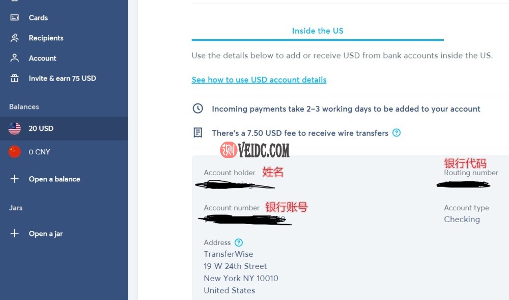 最后获得的Wise银行账号信息: