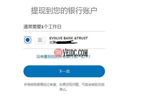 三、Paypal余额转到美元银行卡