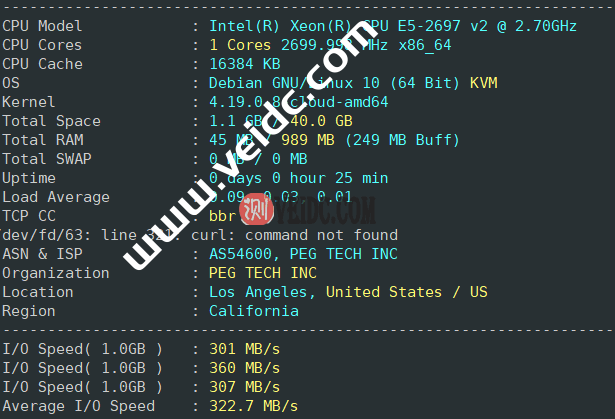 CPU E5-2697 v2 ,主频,2.70GHz,磁盘IO:322.7 MB/s