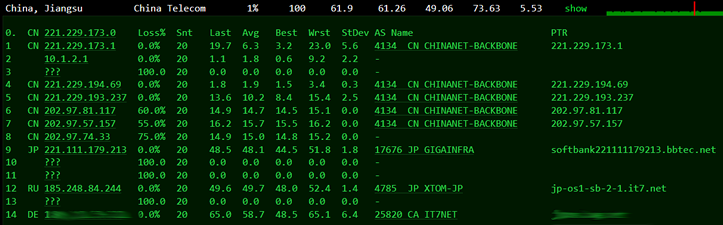 这里我们随机选择三个运营商节点看看去程。