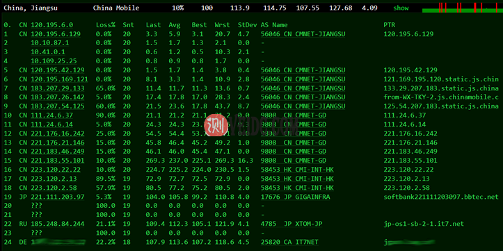 搬瓦工日本测评三网去程