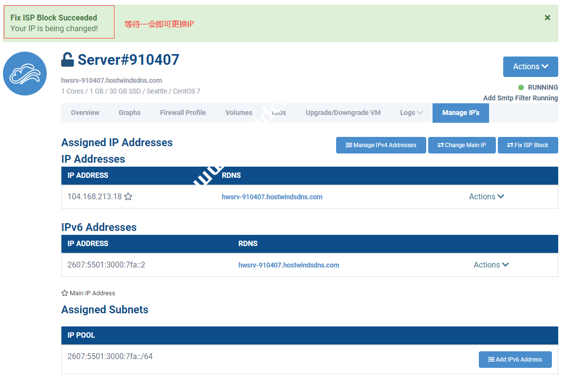 Hostwinds是IDC行业里的后起之秀,成立于2010年,目前拥有美国达拉斯、西雅图和荷兰阿姆斯特丹三大数据中心。虽然成立时间不长,但Hostwinds VPS因其性价比高一直受到国内外用户的青睐。商家总体上而言是实力雄厚,非常不差钱的,所以 VPS 质量也有保障。Hostwinds 目前提供的西雅图机房到大陆地区的访问速度比较好,推荐大家购买的时候优先选择西雅图机房。此外,如果我们的 Hostwinds 的 IP 地址在中国大陆地区无法访问,我们还可以在 Hostwinds 官网后台申请免费更换 IP 地址,非常方便。而且目前来看没有次数的限制,这也算是比较良心的商家了。本文主要介绍Hostwinds 官网后台自助免费更换 IP 图文教程,希望对您有所帮助。
