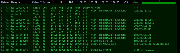 第二、搬瓦工DC4 MCOM三网去程测试情况