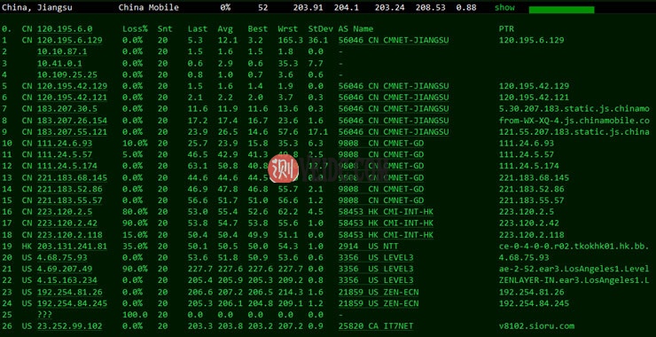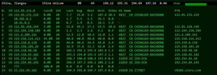 这里我们依旧管理测试中国三个节点,电信、联通和移动的去程。