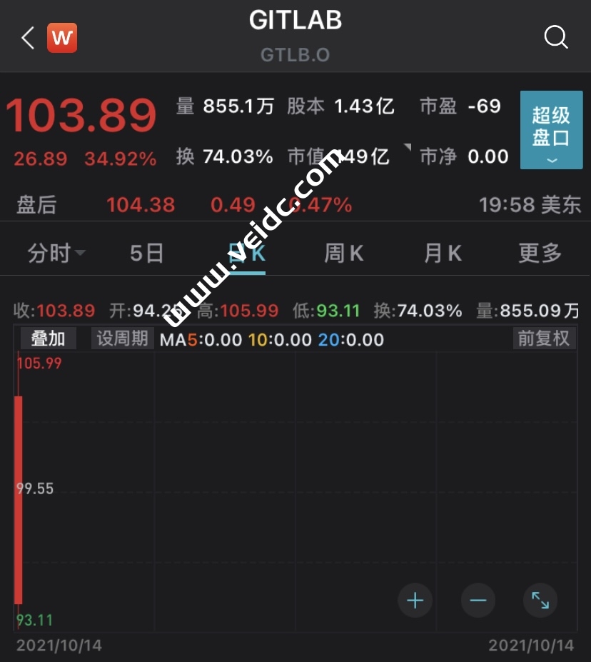 周四,GitLab的开盘价为94.25美元/股,截止收盘,报103.89美元/股,市值达149亿美元。