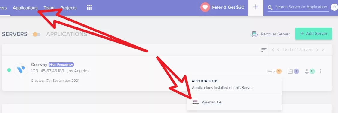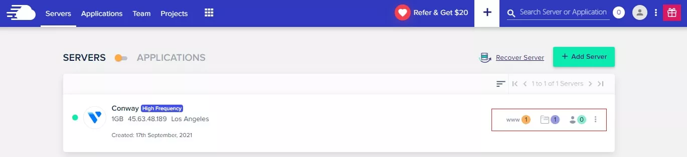 再回到 Cloudways 的后台,在 Servers 页面,我们可以看到服务器和网站已经完成配置和安装,并且已经上线。