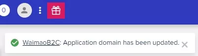 填好域名之后,点击保存按钮,稍等片刻,直到页面右上角出现绿色对钩提示说: Application domain has been updated,就可以了。