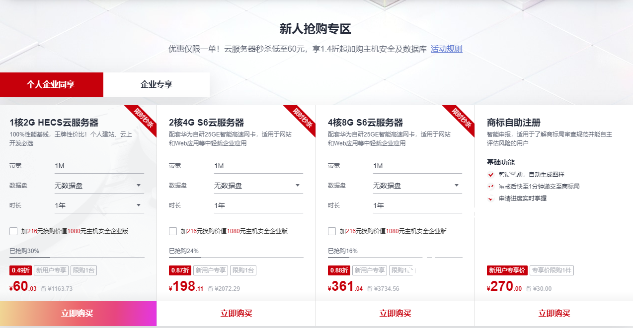华为云活动也是面向新个人和企业用户力度比较大的。活动截止到11月30日,我们可以一起看看有哪些值得入手的。直达华为云嘉年华活动页面。