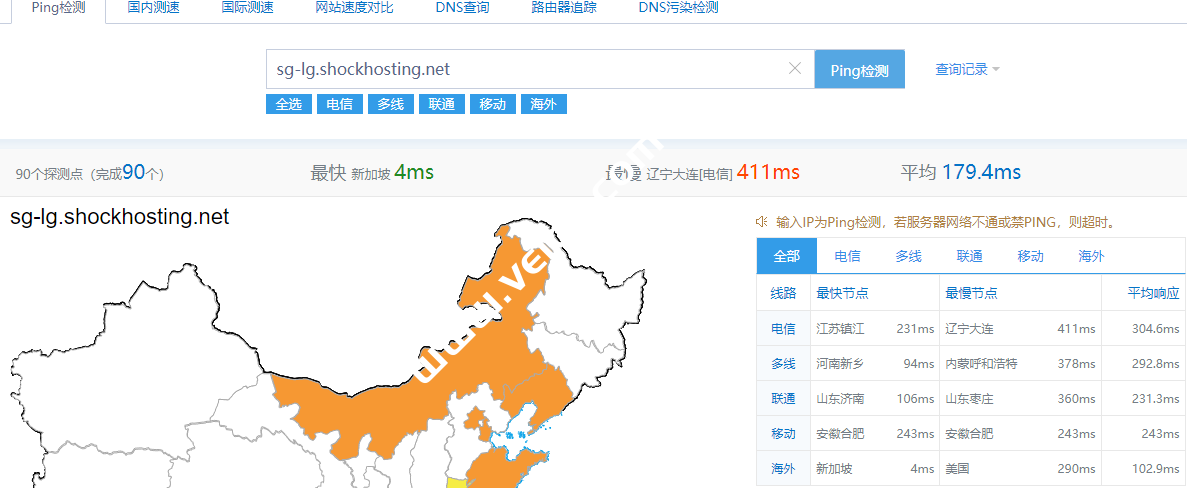 数据提供:ping.chinaz.com,联通的ping值还是很不错的。