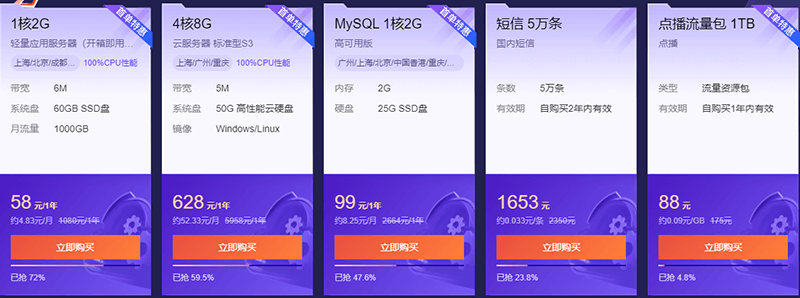11.11爆款商品提前购,1核2G云服务器首年58元