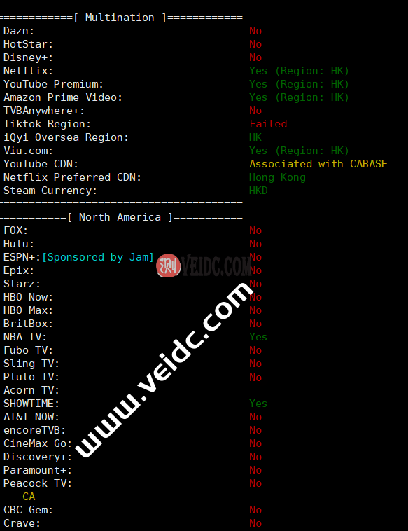 流媒体测试,ipv4解锁情况如下。