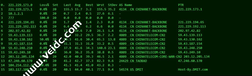 机器为kvm虚拟,带宽从40Mbps-500Mbps共享,默认1个IP!线路:电信双程cn2 gia,联通AS10099+AS4837,移动骨干线路直连!注意:标注红色文字的为今天的测评机器。测试IP:103.117.100.1
