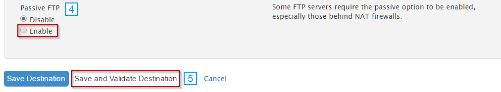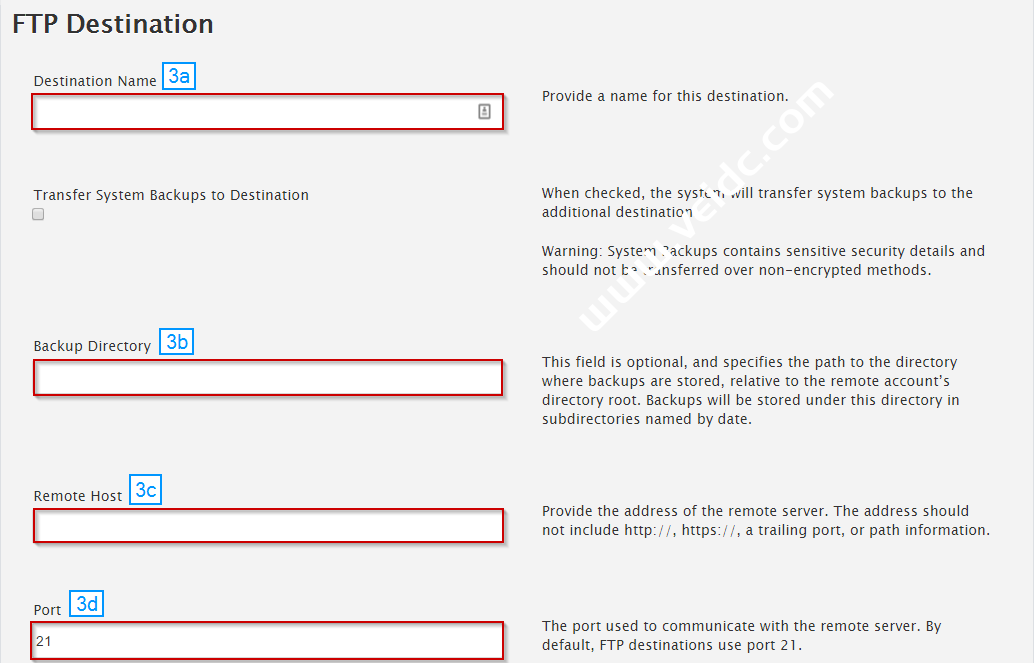 - 在 FTP 目的地部分,填写必填字段: