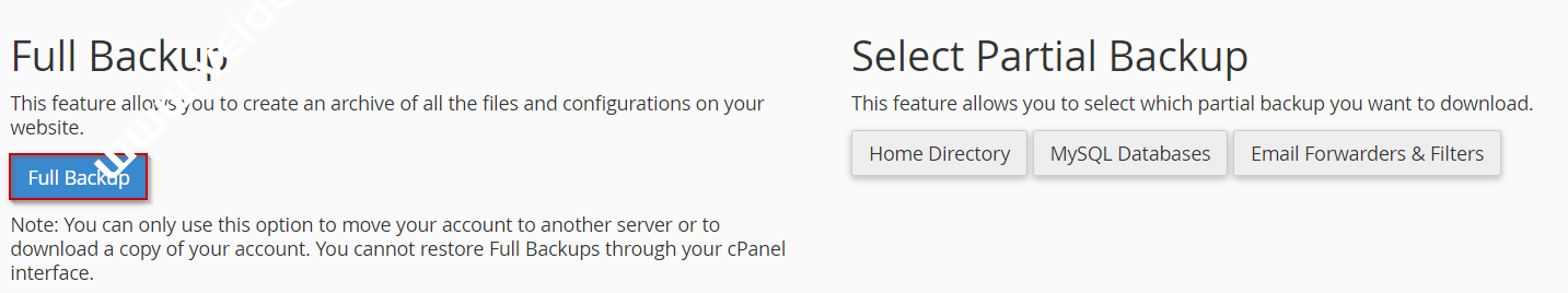 - 选择完整或部分备份。如果您不确定,请选择完整备份选项。