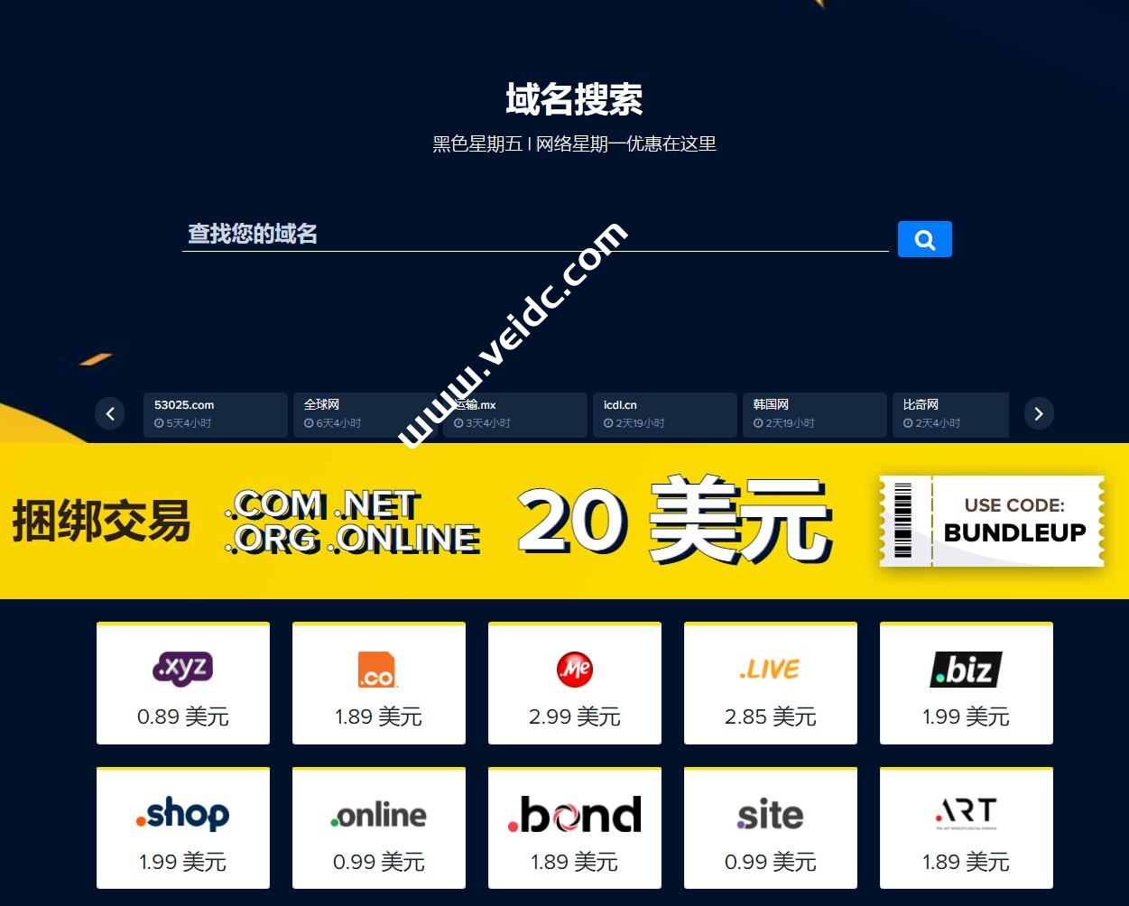 2)20 美元 .COM、.NET、.ORG、.ONLINE 注册 ,优惠券:BUNDLEUP