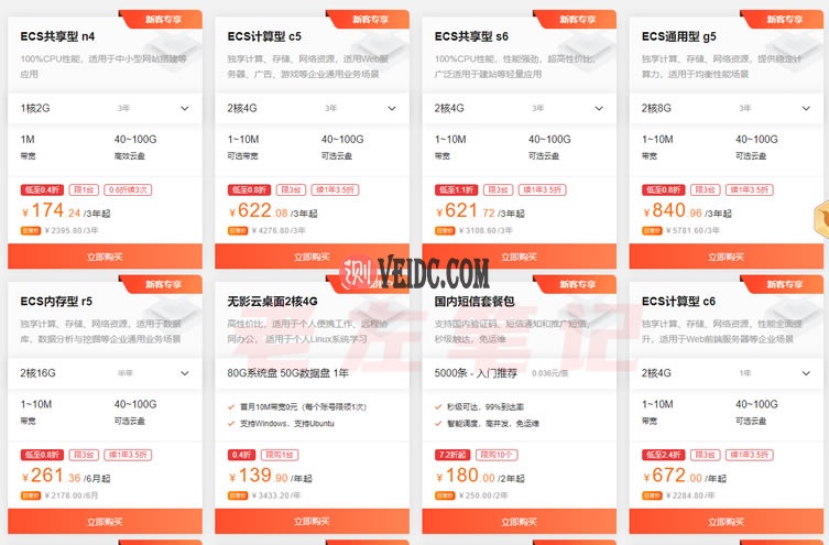 我们看看包含的云服务器套餐还是比较多的。还有无影云桌面、短信、ECS计算型、内存型等套餐。我们可以根据实际需要选择,入门型的话N4是足够的。