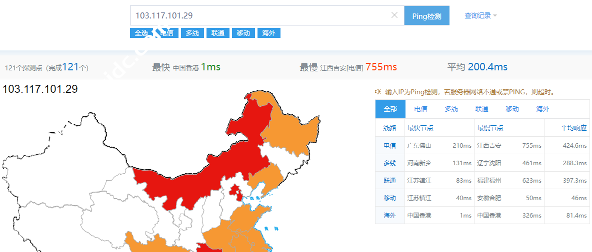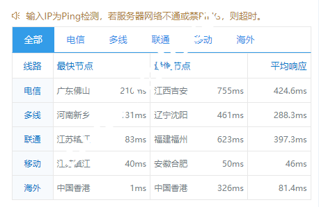 数据提供:ping.chinaz.com,看效果移动最好,联通次之,电信拉跨。