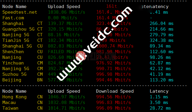 国内测速,移动和联通跑的不错,电信比较差。
