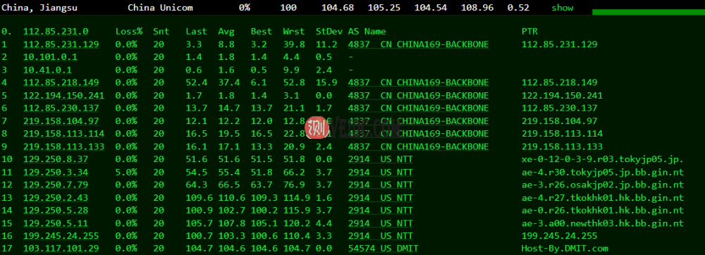 联通回程,直连走香港NTT到内地。