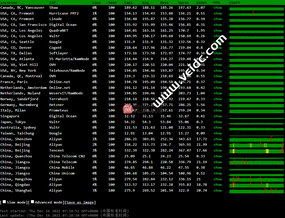 国外测速,国际线路跑的还不错。