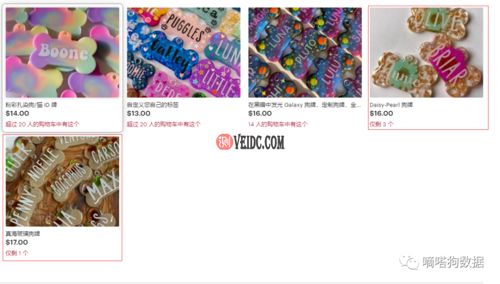 进入店铺界面,发现产品十分受欢迎,价格较高的两款Daisy-pearl狗牌以及真海玻璃狗牌已经快要售卖一空,加起来仅仅剩余4件。