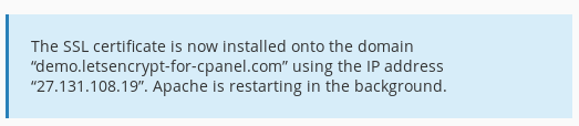 完成后,应在服务器上安装密钥和证书,并显示成功消息: