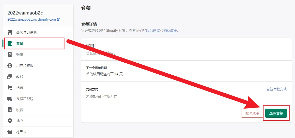 如何修改Shopify套餐支付方式