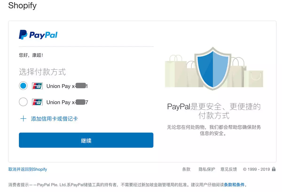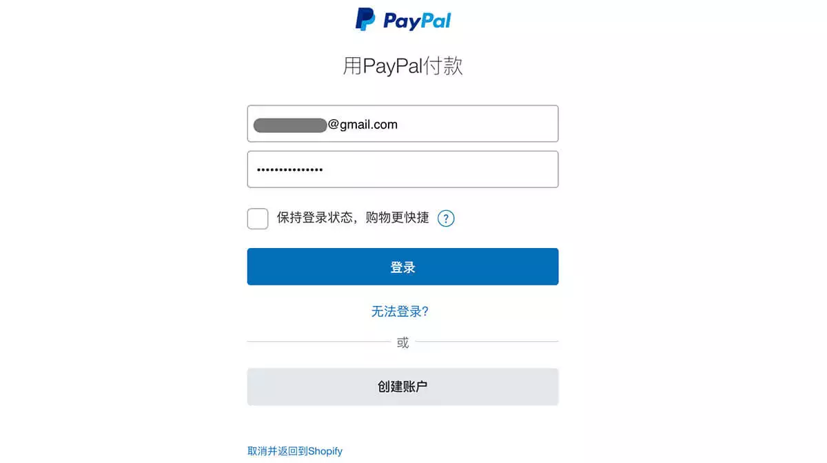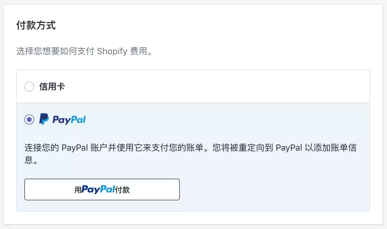 使用PayPal支付Shopify月租
