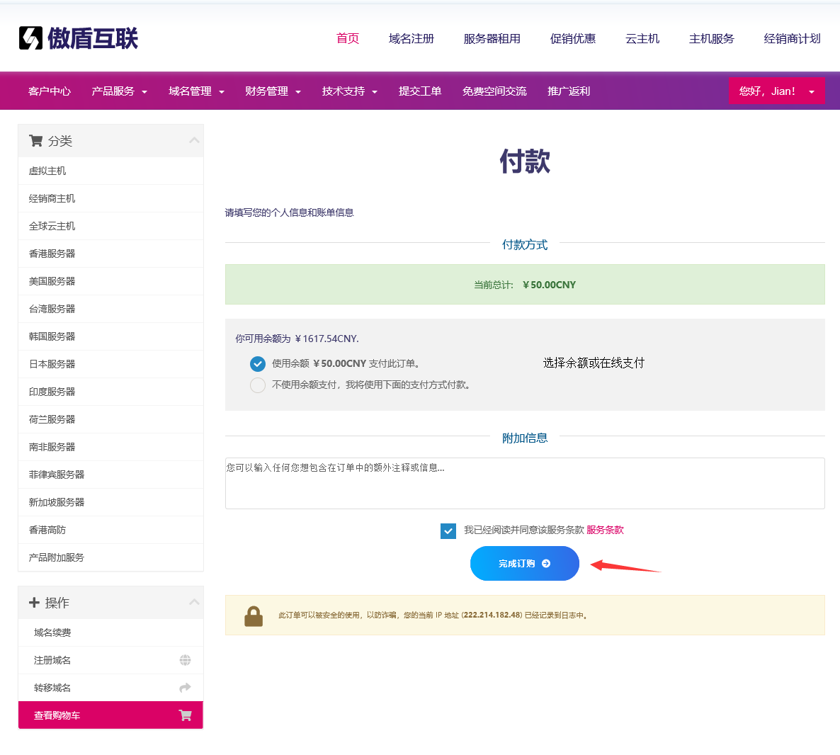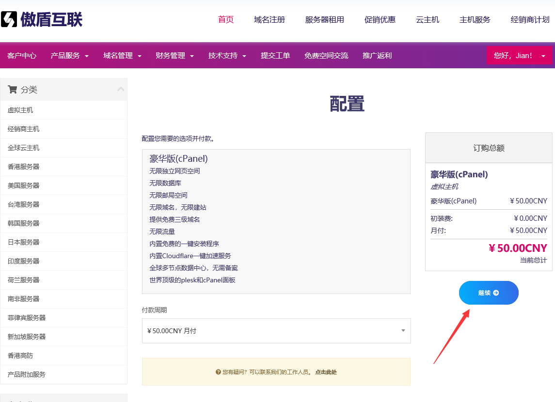 首先得注册账户,这个应该无需讲解。登录,或是购买过程中亦可登录。下面是开通流程: