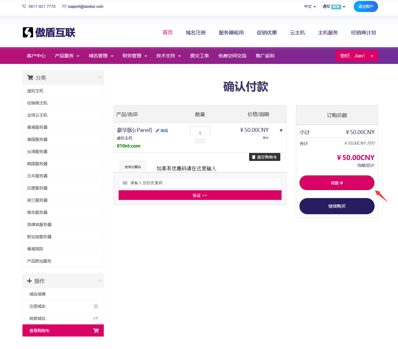 未经允许不得转载:国外主机测评 » 傲盾互联虚拟主机开通流程(含免费空间)
