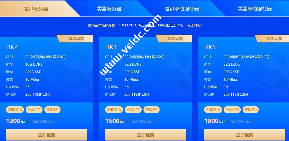 免备案香港服务器,10M CN2 GIA三网直连,Ping值低至5ms,华纳云年终云狂欢特价优惠活动:点击直达>>
