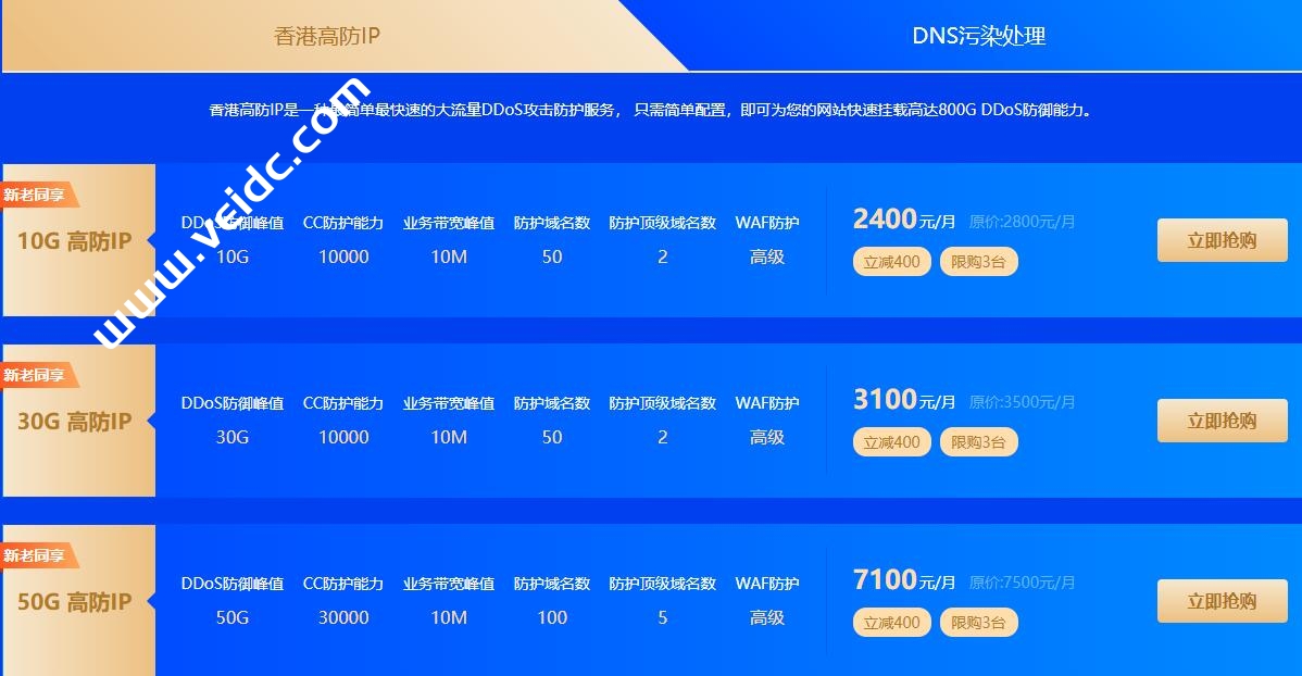 香港高防IP是一种最简单最快速的大流量DDoS攻击防护服务, 只需简单配置,即可为您的网站快速挂载高达800G DDoS防御能力,华纳云年终云狂欢特价优惠活动:点击直达>>