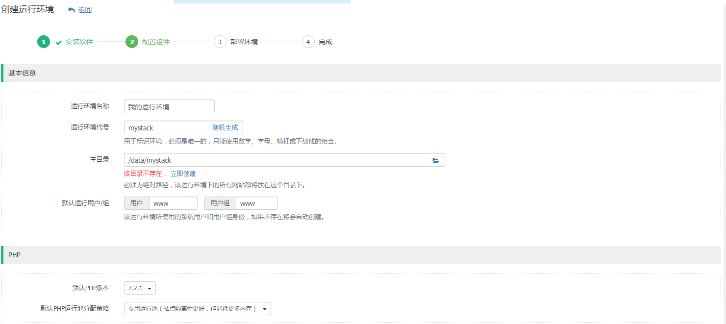 如图所示,我们/data/mystack没有创建,我们点击立即创建