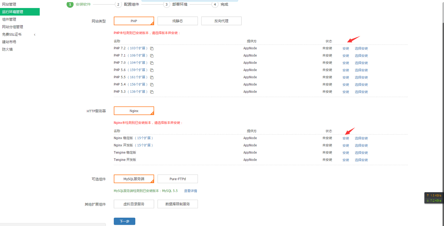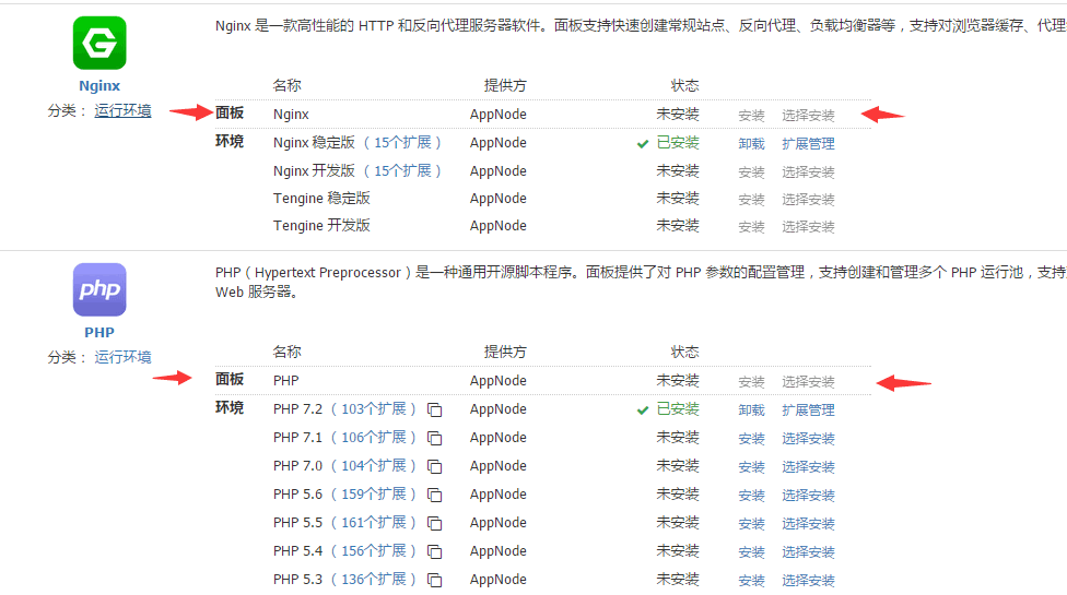 AppNode面板一键安装命令可以直接到官网复制粘贴,选择你想要安装的Nginx、MysqL、PHP等版本,然后将网页生成的命令复制到S-S-H中就可以了。