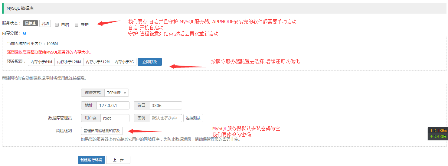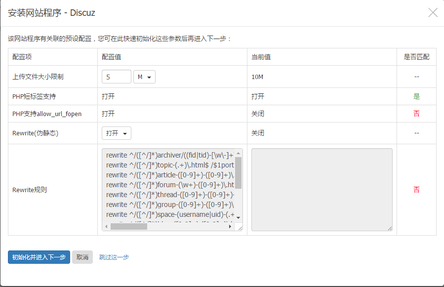 这里显示了APPNODE的强大,APPNODE会根据程序,自己给出简单的建站环境优化,我们按照APPNODE的提示初始化进入下一步就好。