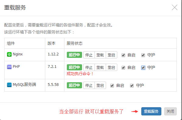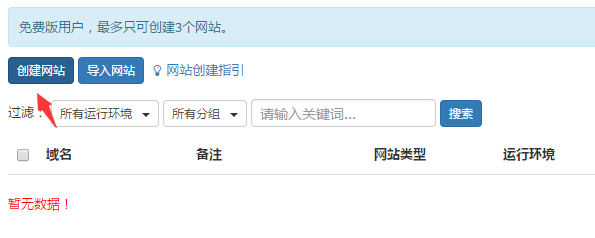 这里运行环境就创建完成,我们就可以返回网站管理界面