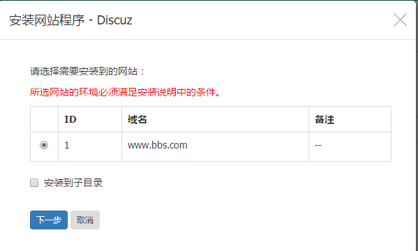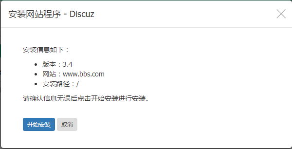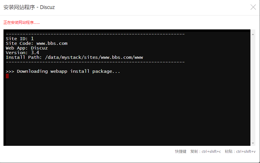 这里正在安装网站程序到/data/mystack/sites/www.bbs.com/www 。