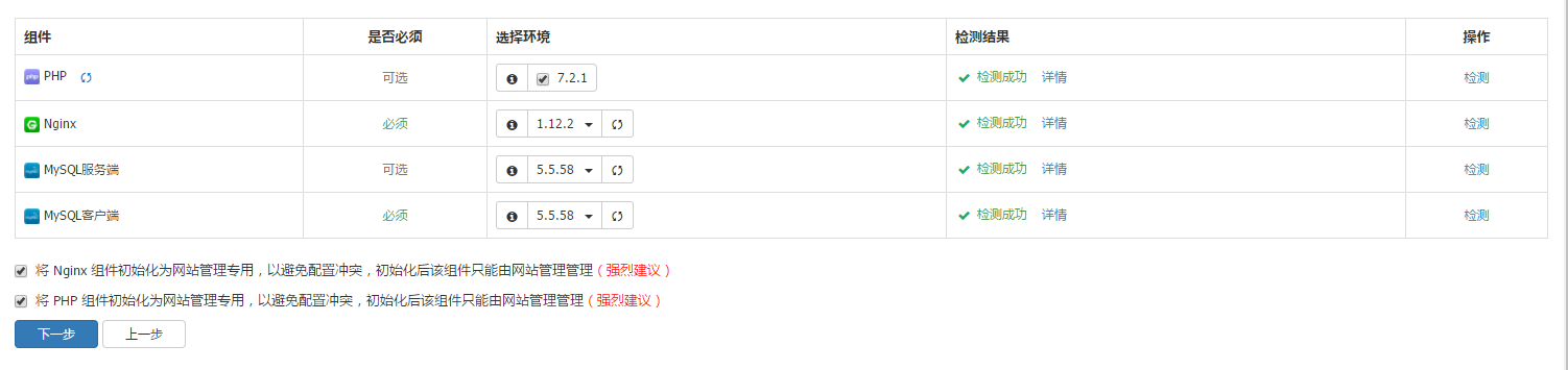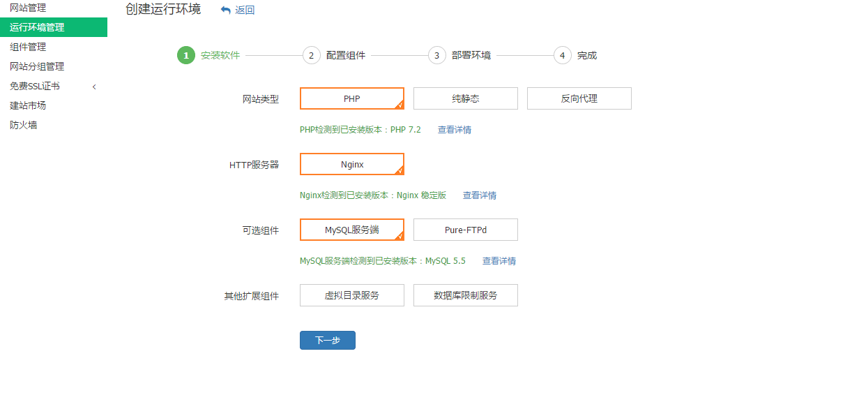 我们已经安装完毕需要的环境,现在就是需要创建运行环境,我们点击下一步。