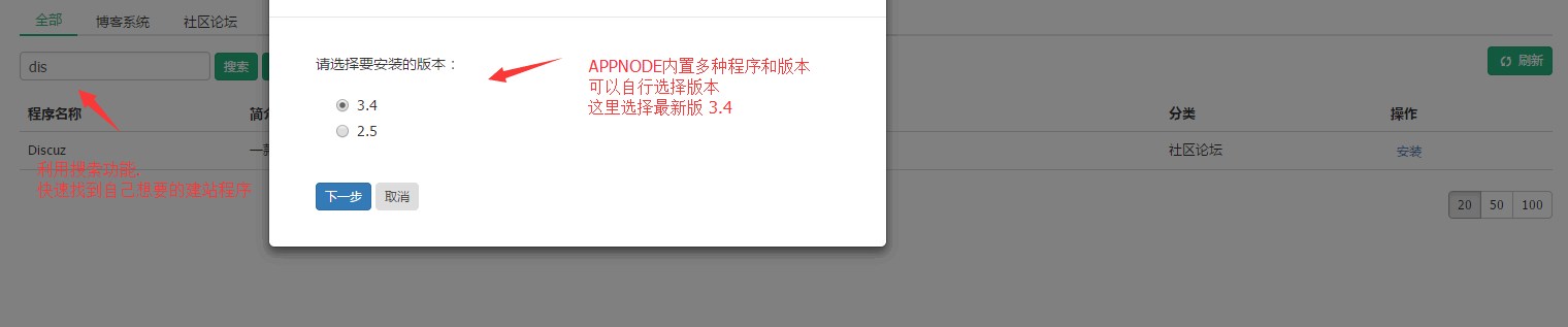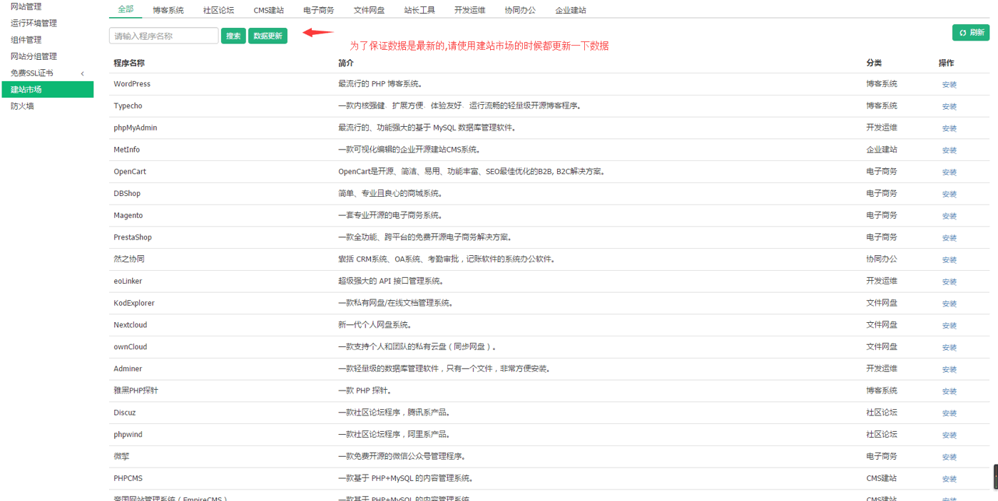 APPNODE内置了多种 建站程序,大家都可以在这里简单快捷的安装,下面 我们用建站市场安装Discuz。